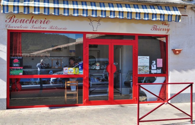 Late on our last afternoon in the village of Sablet, Larry and I went out foraging for dinner at some of the local “commercants“. We started at Chez Thierry, the boucherie (butcher shop).