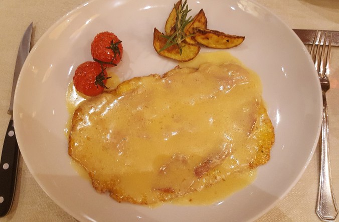 As in all cooking at Trattoria Battibecco, the key was subtlety and refinement. That’s certainly what I experienced with the Cotoletta alla Bolognese, topped with ham and parmesan cream. Here was a long, thin slice of veal, topped with a perfectly fitted slice of prosciutto, and finished with a tan, buttery glaze of heaven. This is a premier example of an iconic Bolognese dish that has earned a global reputation for the food of Bologna.