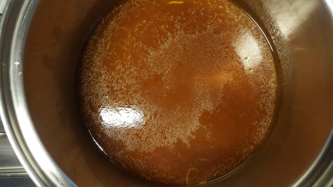 - Mix all liquid ingredients (including strained broth from hog’s head) into the pot and cook for awhile until it has thickened a little bit.