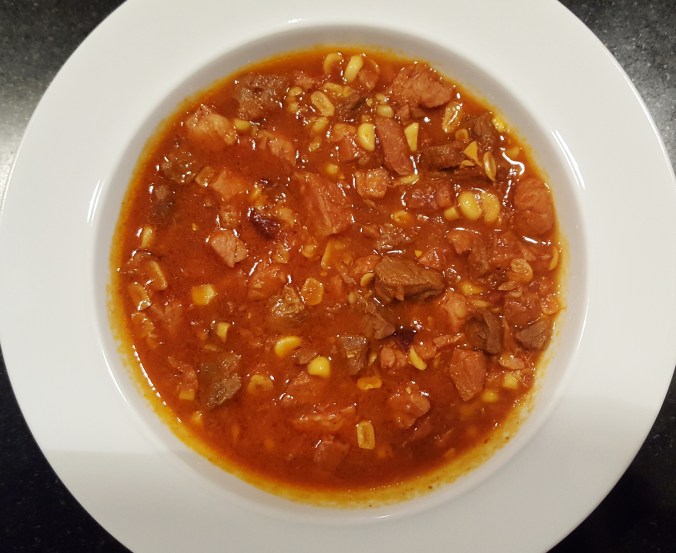 The dish is a thick stew, not a soup. Depending on your state, neighborhood, and financial condition, the meat(s) included any combination of pork, beef, chicken, venison, rabbit and sometimes the aforementioned squirrel. My grandmother used pork and beef and didn’t mess around with a lot of vegetables. Corn, tomatoes, onions, and sometimes lima beans (we called them butter beans) about summed it up. Her recipe and methods stemmed back from the eighteen-hundreds when it was simmered outdoors over an open wood fire in a 25-gallon iron pot. The ingredients were slowly cooked until the meats were broken down into small bits and the mixture merged into a thick, rich magical elixir.